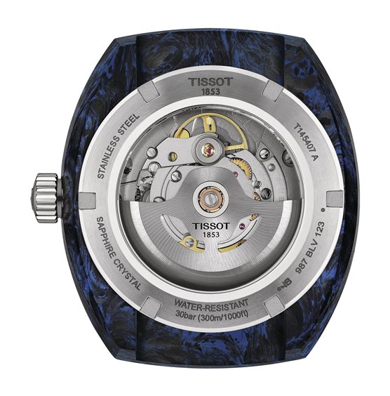 Tissot propone questo modello Sideral Powermatic 80 con cassa che misura 41 mm di diametro ed ha una linea a barile. Il movimento del Sideral è un Tissot Powermatic 80 che offre appunto 80 ore riserva di carica. Vetro zaffiro bombato antigraffio con rivestimento antiriflesso. Cassa in acciaio inossidabile 316L con carbonio forgiato marmorizzato nero e blu.